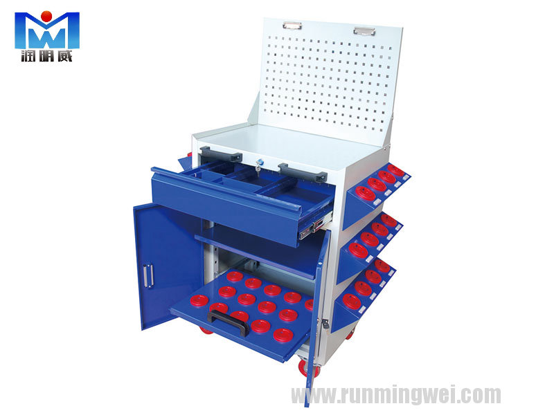 用途:适用于配置于加工中心车间作业现场设备周边,用于分类存放各类工具、配件、量具、治具、夹具等,并可作为操作检验平台使用。